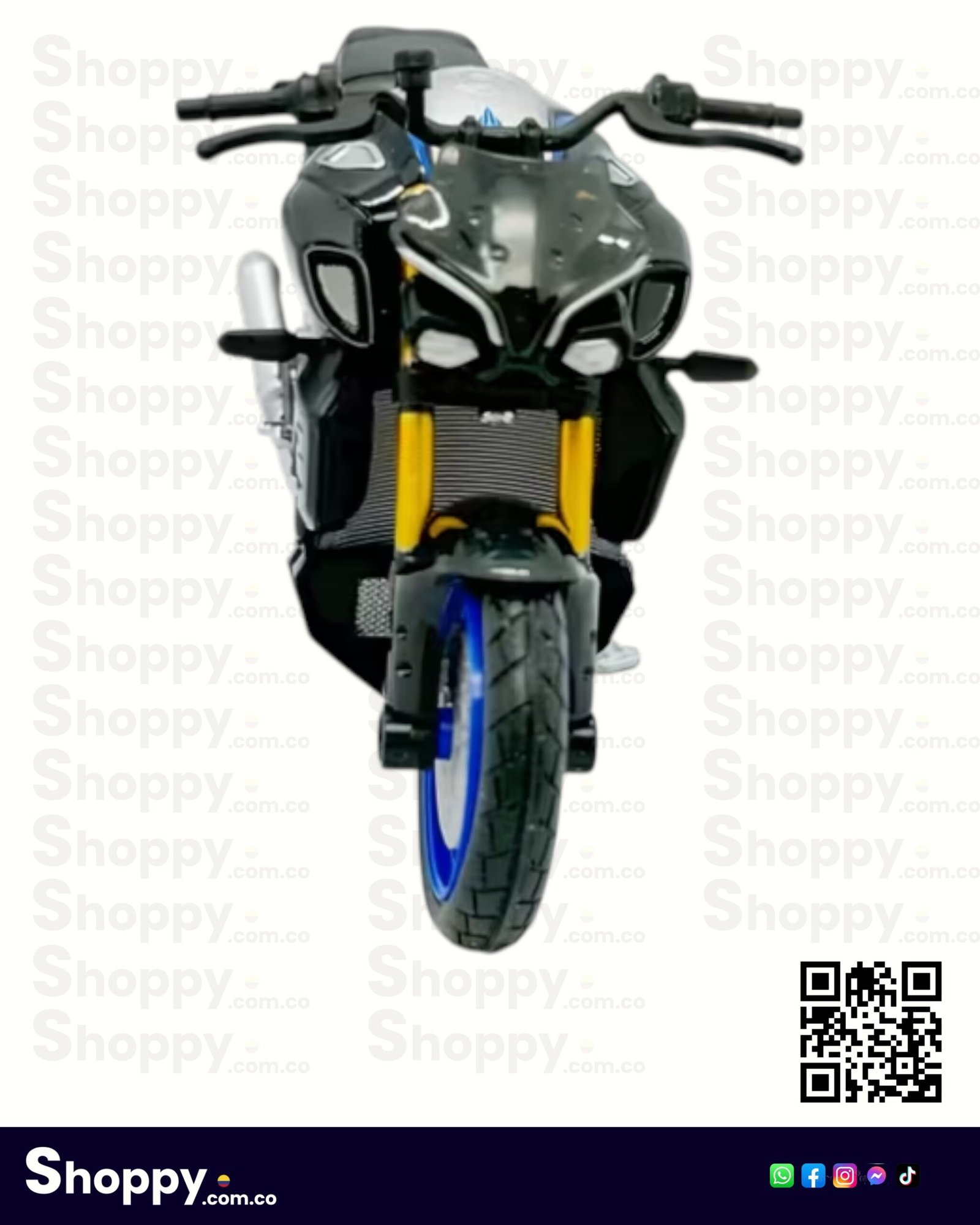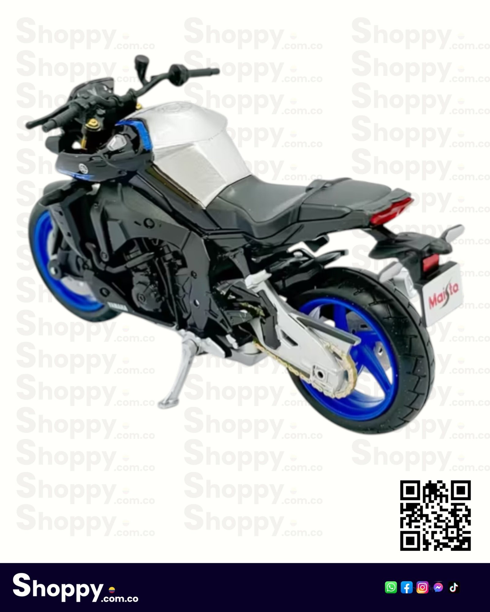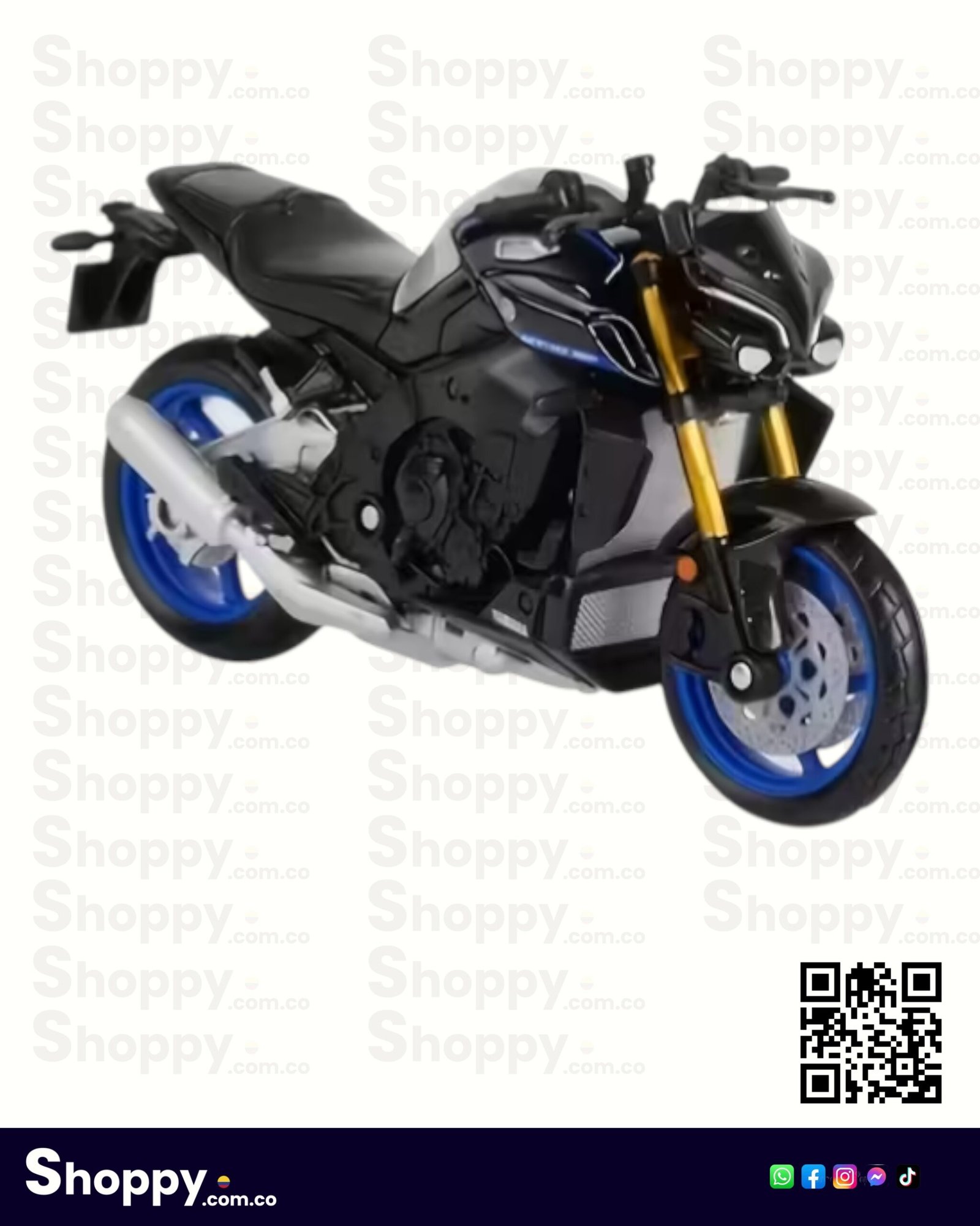 El modelo cuenta con detalles funcionales como neumáticos de caucho real, dirección móvil y una suspensión trasera con resorte, lo que añade un nivel de realismo superior. Es una pieza estática perfecta para exhibir en vitrinas, escritorios o estanterías de aficionados a las «Super Naked». Su combinación de colores oficiales y acabados de pintura premium la convierten en un objeto de deseo para los entusiastas de Yamaha y el modelismo a escala.
