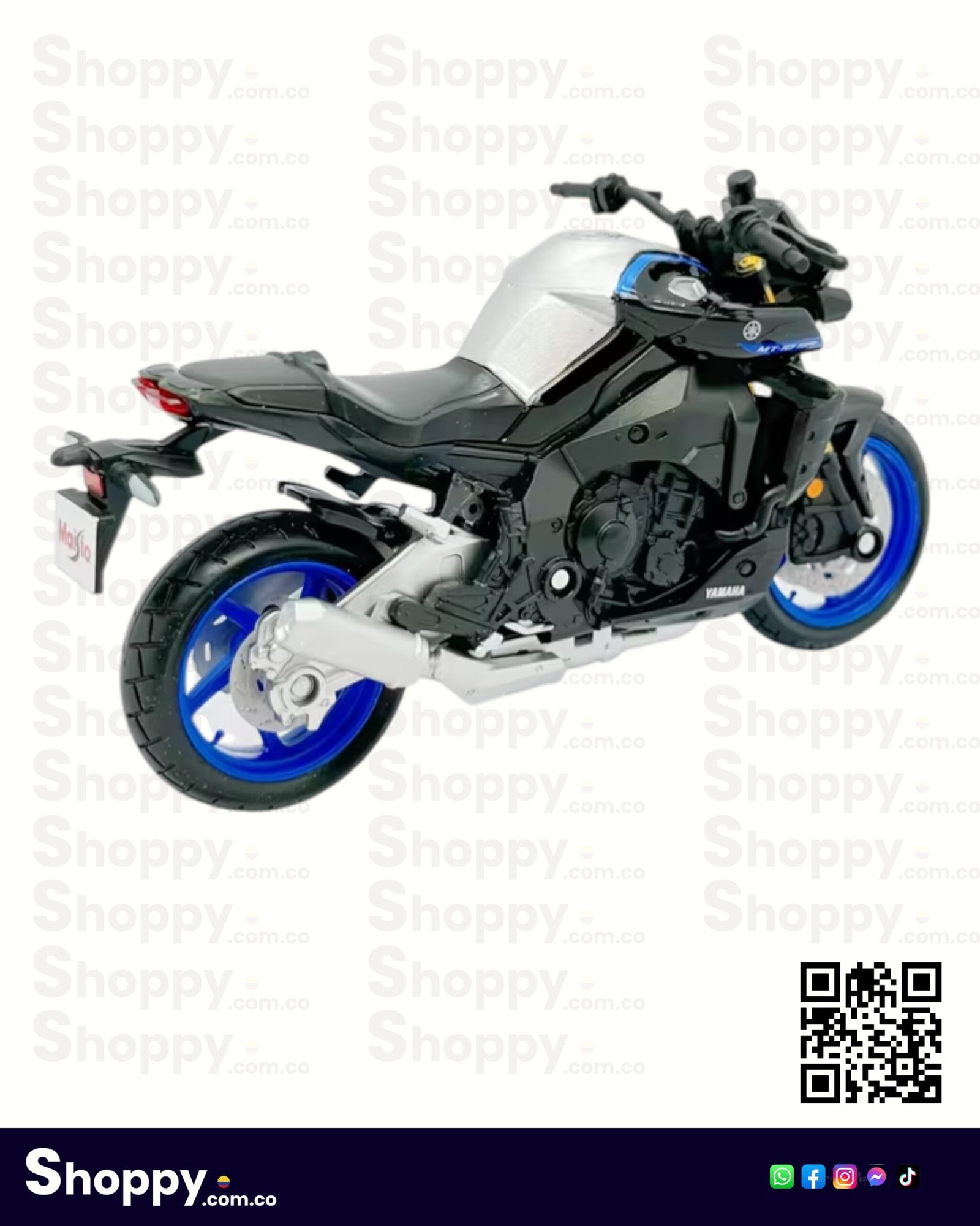 Réplica Maisto 1:18 de la Yamaha MT-10 SP 2023. Fabricada en Die-Cast con detalles realistas, dirección móvil y suspensión funcional. Pieza de colección estática ideal para aficionados y entusiastas de las motos.