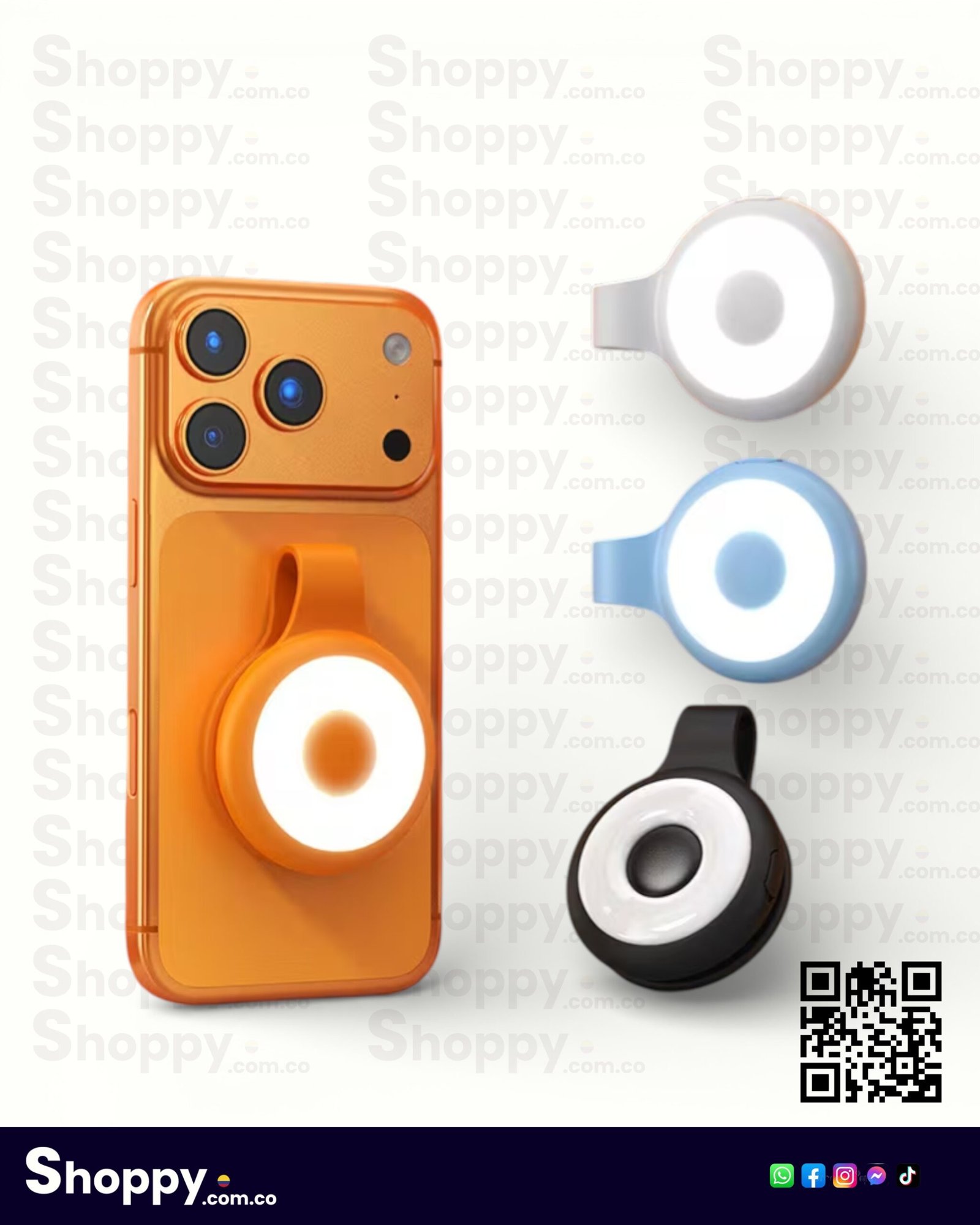 A diferencia de las luces de plástico negro genéricas, este potenciador de luz viene en un elegante color beige con acabados premium. Incluye un colgante delicado para que puedas llevarla como accesorio en tu bolso o celular.