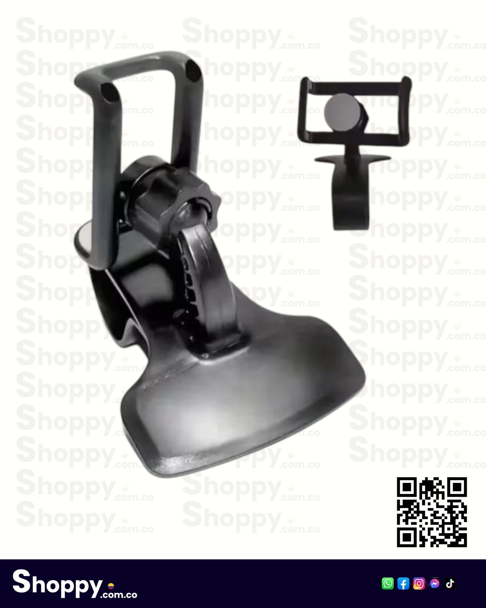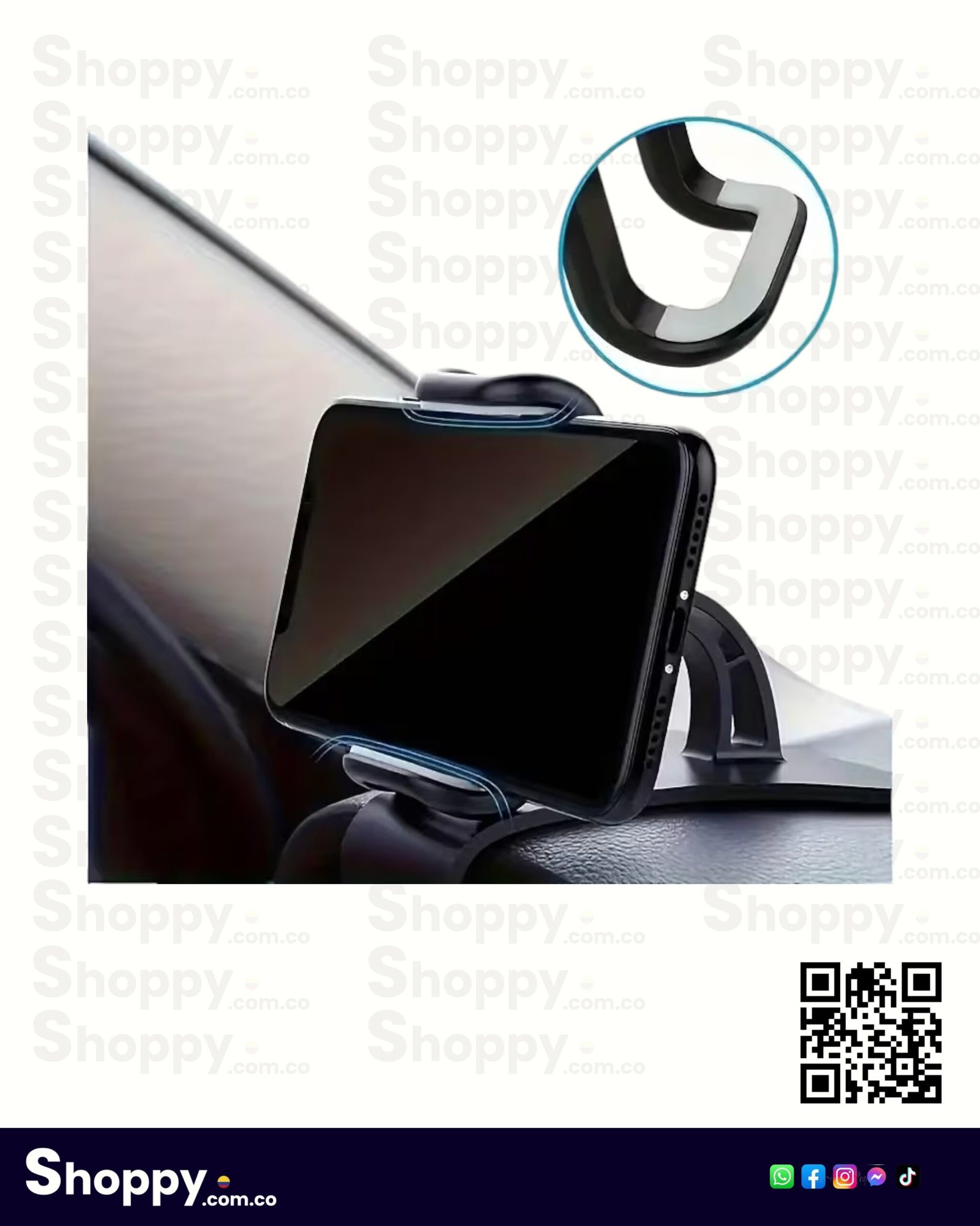 Soporte universal giratorio para coche con ajuste 360°. Fabricado en plástico de alta durabilidad, fácil de instalar y compatible con todos los smartphones. Diseño compacto para una conducción manos libres segura y estable.